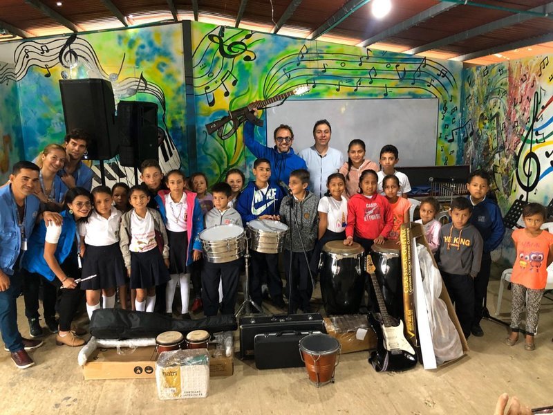The UN Verification Mission in Colombia delivered musical instruments to the children of the music school in the reintegration area of Icononzo, Tolima, 130 km south of Bogotá, on 11 March. In December 2019, the UN Mission together with Cesar López, a musician and peace activist, and the Colombian radio station Caracol collected 200 musical instruments through the campaign “Let's sing another story”. The delivery of instruments to Icononzo was the first of its kind. The campaign will reach several remote regions bringing art and music to the communities affected by the conflict.